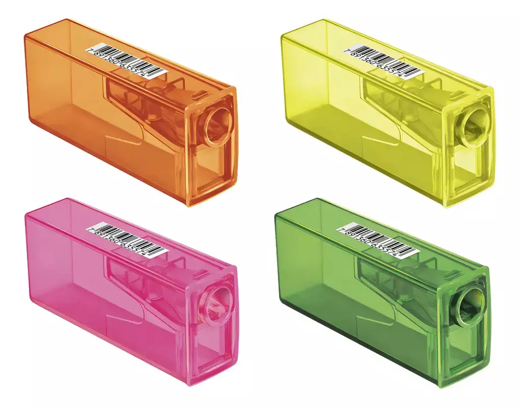 Fabricado em plástico resistente, possui 1 furo padrão que garante um apontar preciso, preservando a ponta do seu lápis por mais tempo. O depósito integrado armazena as aparas com eficiência, evitando sujeira na mesa, no estojo ou na mochila.