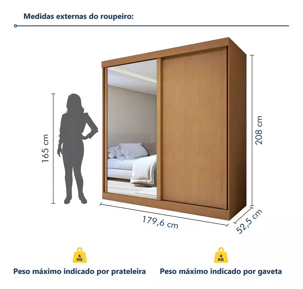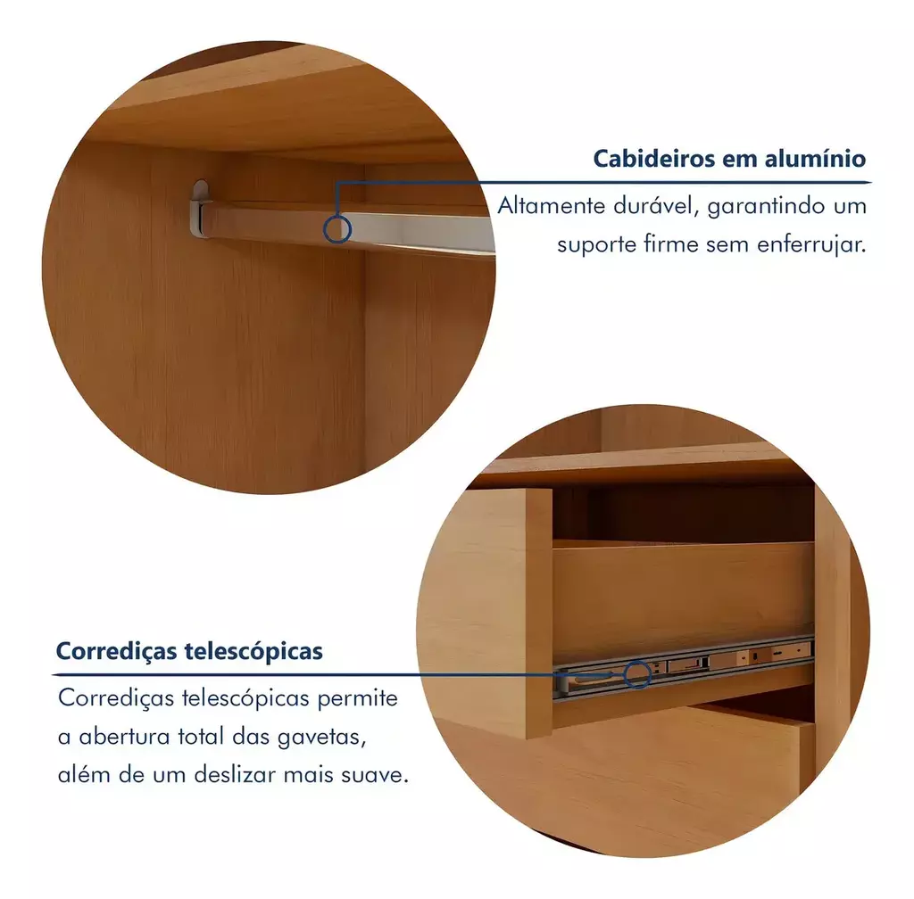 O modelo oferece excelente distribuição interna, permitindo guardar roupas, acessórios e objetos pessoais com facilidade. Perfeito para quem procura um móvel bonito, durável e com ótimo custo-benefício.